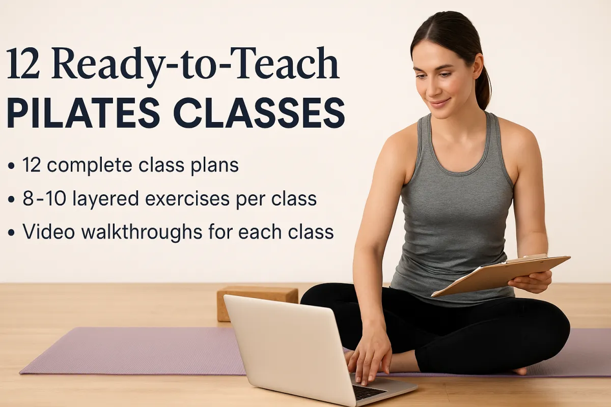 The 12 Ready-to-Teach Pilates Classes pack gives you everything you need to start teaching straight away - confidently, professionally, and without the guesswork.